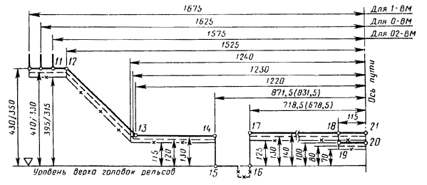 для габаритов 0-ВМ, 02-ВМ, 03-ВМ и нижней части габарита 1-ВМ