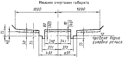 1. В нижней части размер 340 мм определяет габарит приближения желобов и контррельсов, а размер 320 мм - габарит приближения всех других постоянных частей верхнего строения пути.