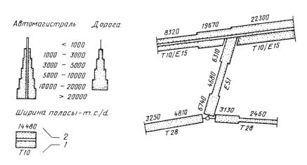 1 - международный номер дороги; 2 - среднегодовая интенсивность движения т.с./d
