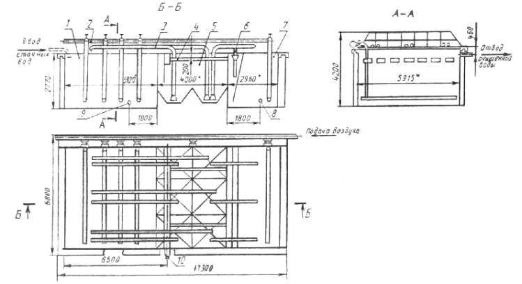 Примечание. На чертеже приведена пневматическая система аэрации.