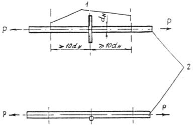 Схема испытания нахлесточных соединений анкерных стержней закладных изделий на срез