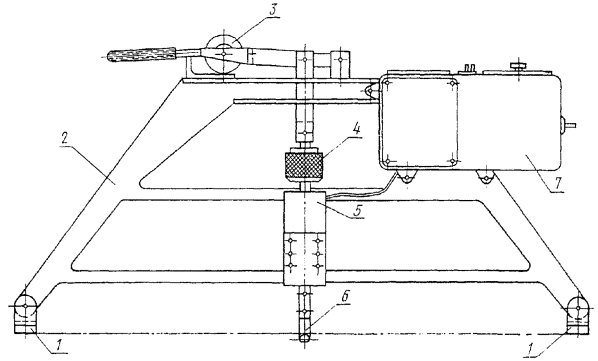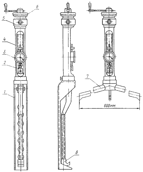 6.3. При оттяжке арматуры на базе формы прибор упирается в форму, которая является звеном цепи измерения. При оттяжке на базе прибора, прибор контактируется с арматурой в трех точках, но не находится в контакте с формой.
