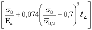 Расчет удлинения арматурной стали Dl при отношении величины ее предварительного напряжения s0 к средней величине условного предела текучести `s0,2 более 0,7 производится по формуле