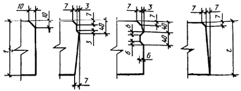 Варианты профиля продольных граней плиты (сеч. 6 - 6)
