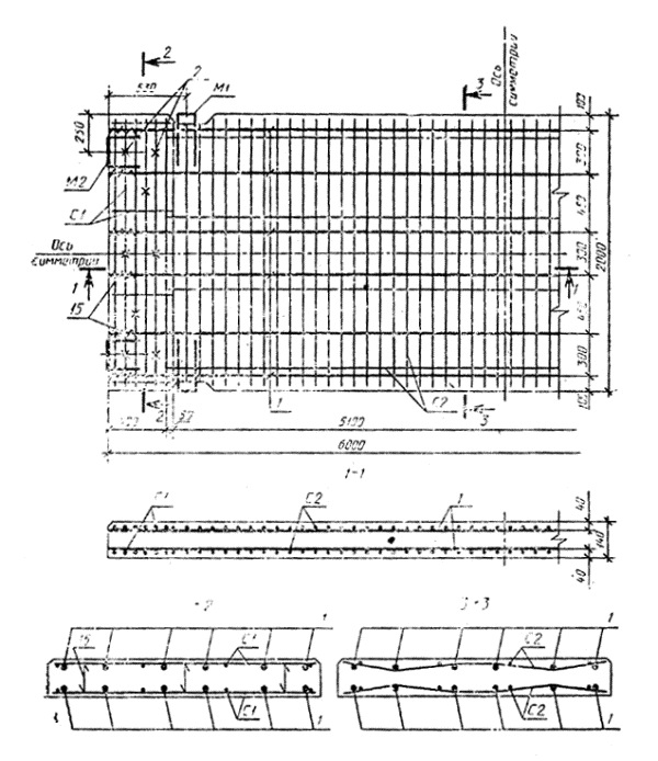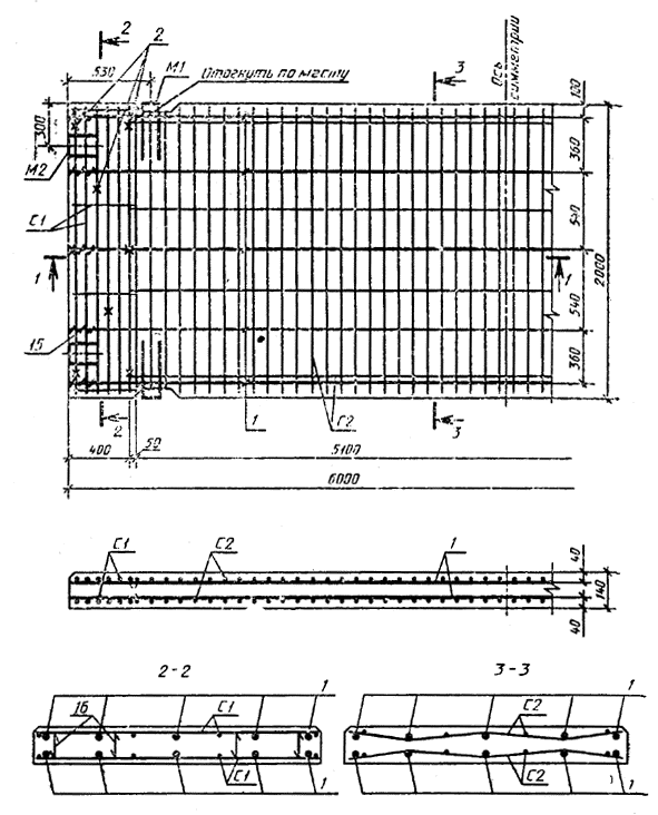 1 - напрягаемая арматура; 2 - крепление сеток С1