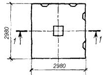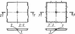 1 - участок размерами 200 ´ 200 мм для контроля фактической отпускной прочности бетона на сжатие неразрушающими методами; 2 - возможный участок испытания