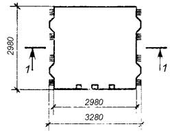 1.2. Конструкции разработаны под нормативные временные длительные нагрузки на междуэтажные перекрытия: 4,90 (500), 9,806 (1000), 14,71 (1500), 19,61 (2000), 24,52 (2500), 29,42 (3000) кПа (кгс/м2).