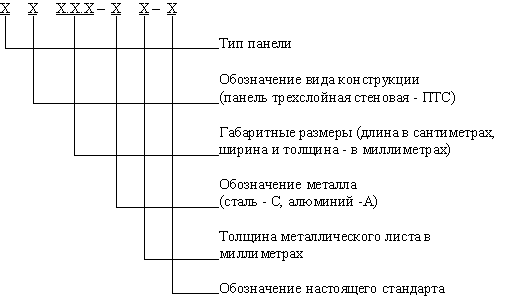 1.3. Панели обозначают марками в соответствии с нижеприведенной схемой.