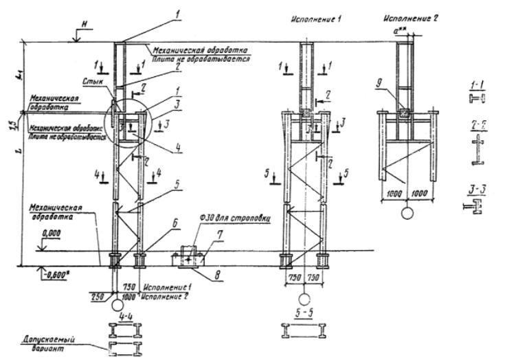 Допускается по согласованию потребителя с предприятием-изготовителем соединение надкрановых и подкрановых частей колонн осуществлять на заводе. В этом случае шаблон для сборки колонн в комплект не входит.