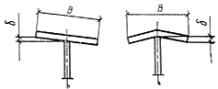 Неперпендикулярность поверхностей пояса и стенки сварного двутаврового сечения при ширине пояса B: