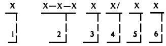 1 - тип профилированного листа (3.1.1); 2 - размеры в миллиметрах (высота h, ширина B1 и толщина t); 3 - материал исходной заготовки (3.1.2); 4 - обозначение лакокрасочного покрытия листа по поверхности С (3.1.3, черт. 1-9); 5 - обозначение лакокрасочного покрытия листа по поверхности Д (3.1.3, рис. 1-9); 6 - обозначение настоящего стандарта