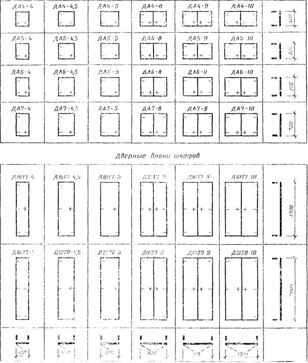 1. Над схемами дверных блоков шкафов и антресолей обозначены их марки.