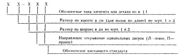 1.13. На элементы и детали шкафов и антресолей устанавливают следующую структурную схему условного обозначения: