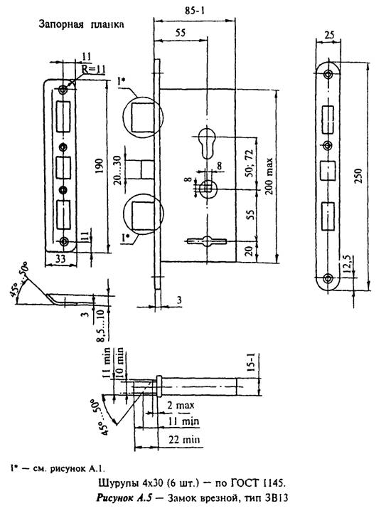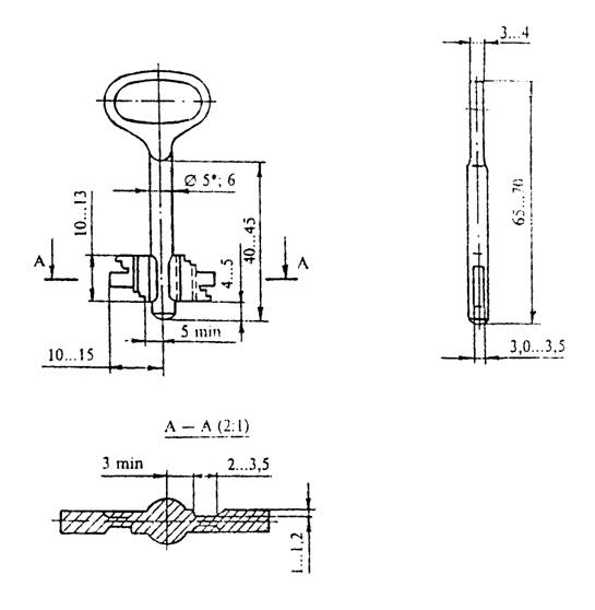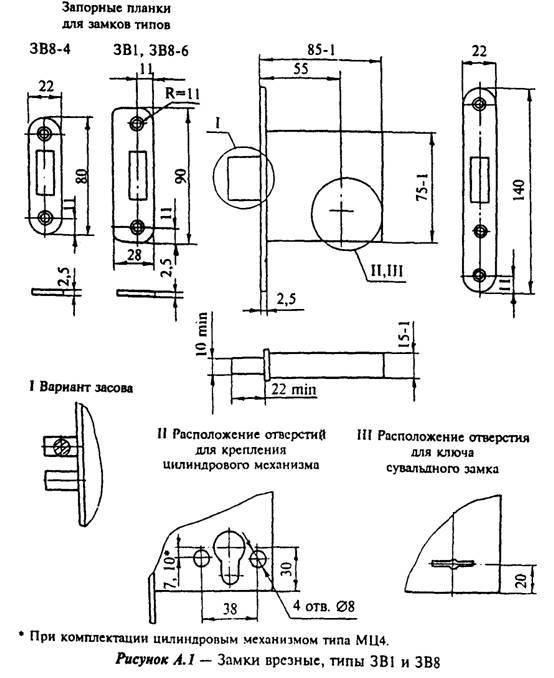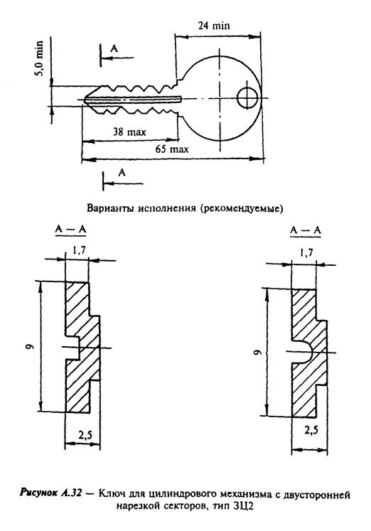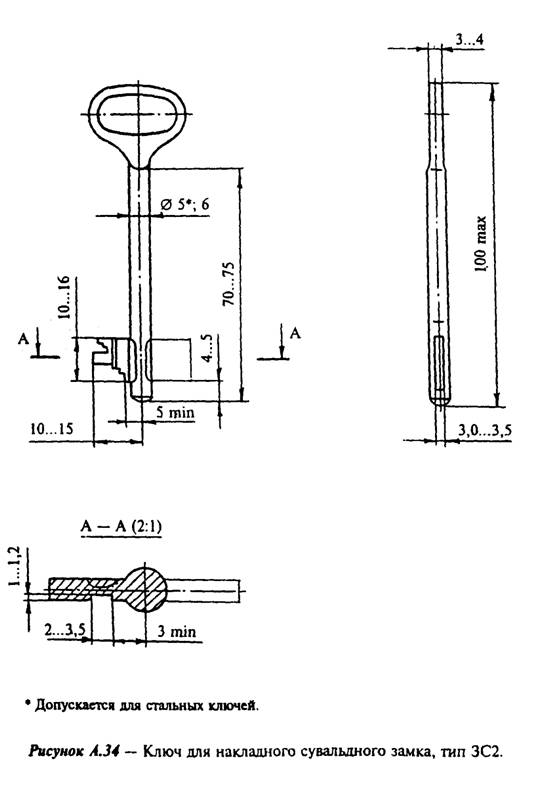 3.2. Типы, основные размеры замков, защелок, цилиндровых механизмов, ручек, накладок и ключей указаны на рисунках А1…А.34.