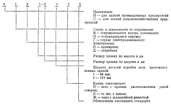 1.8. Устанавливают следующую структуру условного обозначения (марки) окон: