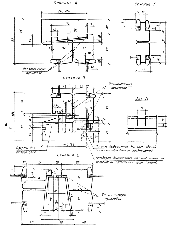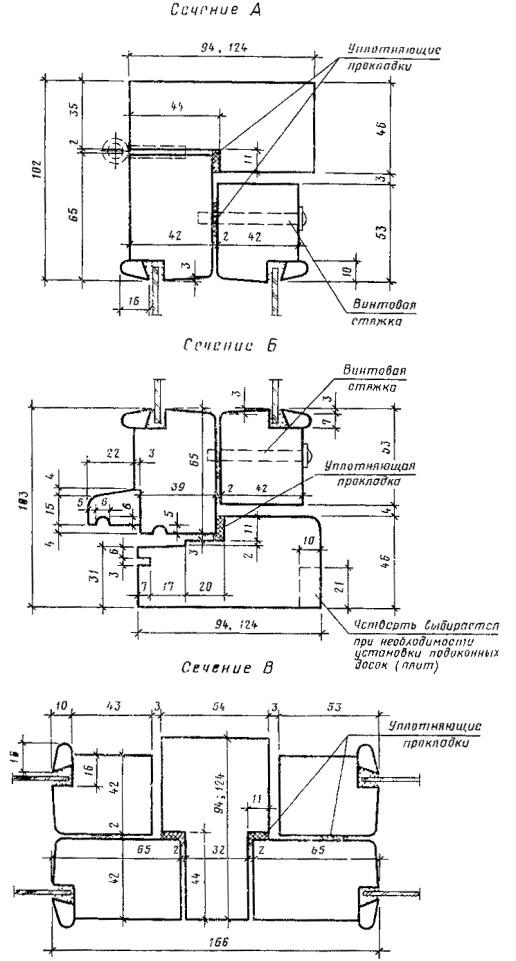 2.7. Уплотнение притворов окон должно производиться пенополиуретановыми прокладками по ГОСТ 10174, а места их крепления указаны на чертежах сечений деталей.