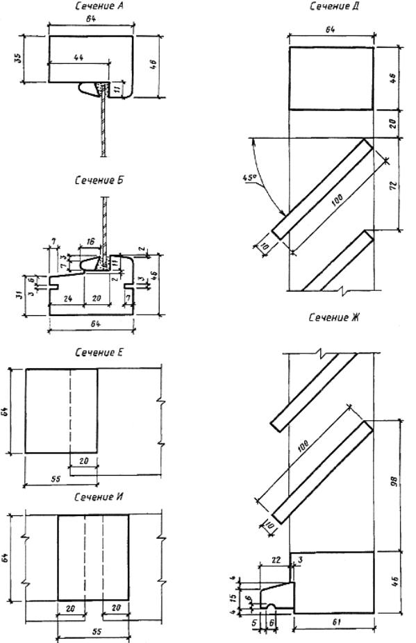 2.4. Конструкция, форма, основные размеры и марки окон серии Г для зданий промышленных предприятий должны соответствовать указанным на черт. 11, а для сельскохозяйственных предприятий - на черт. 12. Форма и размеры сечений деталей окон серии Г для зданий промышленных предприятий указаны на черт. 13, а для зданий сельскохозяйственных предприятий - на черт. 14.