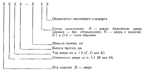 1.8. Устанавливают следующую структуру условного обозначения дверей: