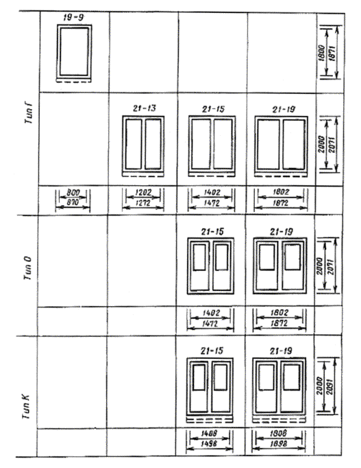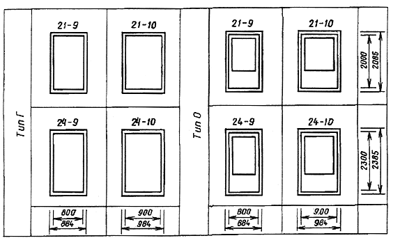 1.6. Типы и размеры дверных блоков должны соответствовать указанным на черт. 1 и 2. Допускается изготовление дверей с габаритными размерами в модулях по ГОСТ 6629-88 и ГОСТ 24698-81 при конструктивном исполнении по настоящему стандарту.