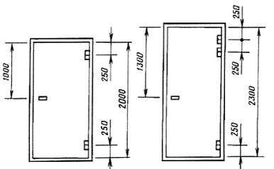Примечание к черт. 1 и 2. Над схемами дверей указаны координационные размеры высоты и ширины в модулях.