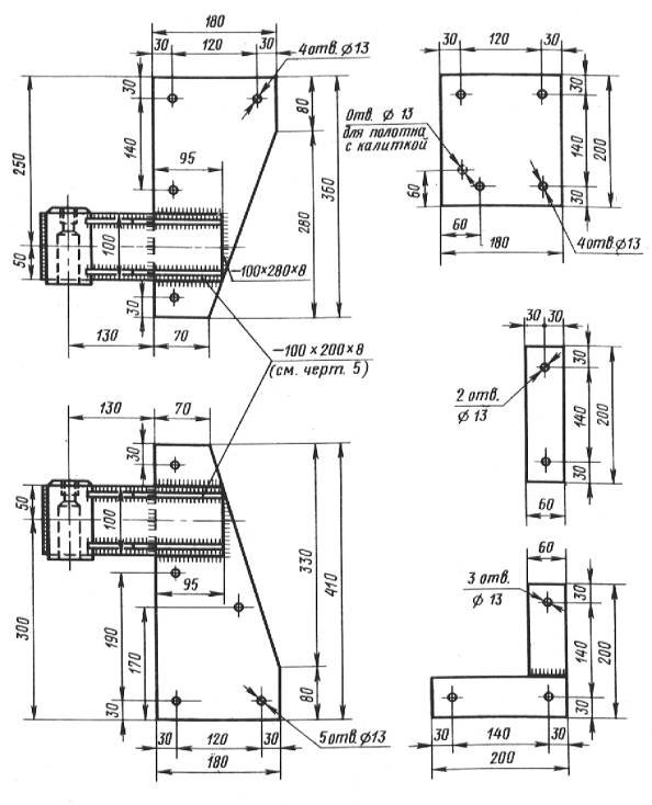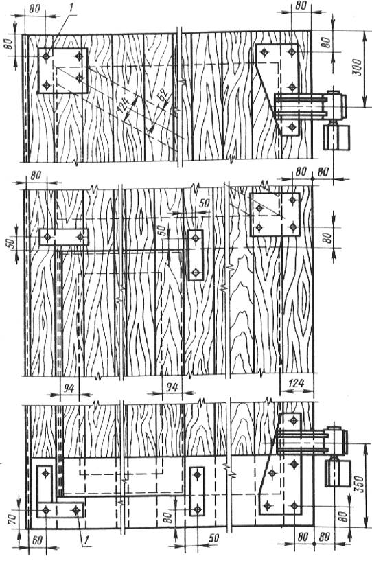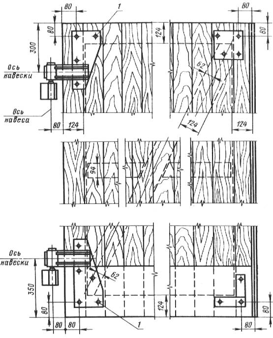 2.15. Крепление металлических накладок и навесов к полотнам ворот должно производиться, как указано на черт. 8 и 9.