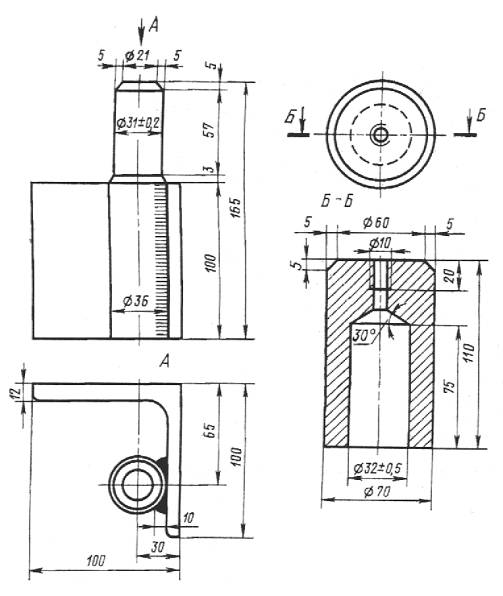 Форма и размеры сечений деталей ворот с глухими полотнами