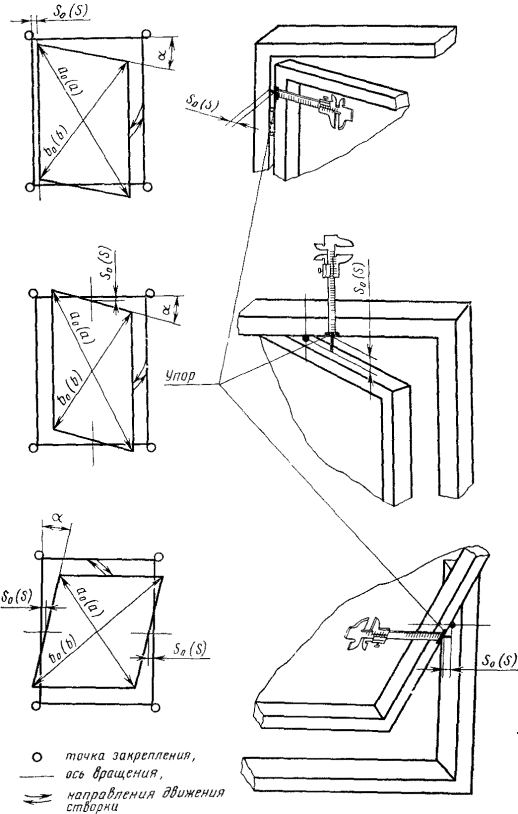 2.1.4.6. По окончании испытания производят осмотр образца с целью обнаружения повреждений. Поворачивают створку в первоначальную позицию - на заданный угол a и измеряют диагонали а, b и зазор s.