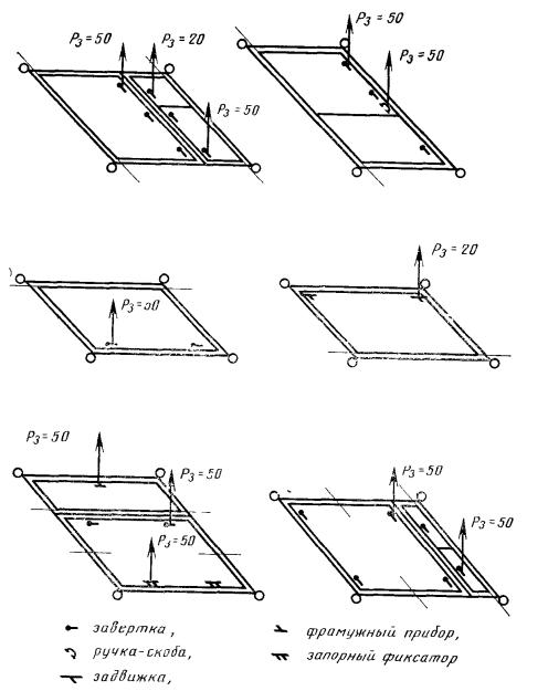 2.3.3.3. Запорные приборы освобождают. Угол створки прижимают (см. черт. 3) с силой не менее Z=1,2 Ри', где Ри' - ожидаемая предельная нагрузка.