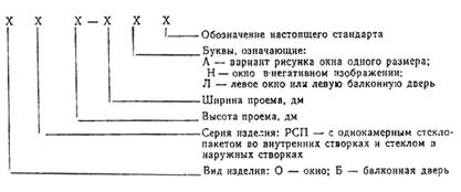 1.5. Устанавливают следующую структуру условного обозначения марки) окон и балконных дверей: