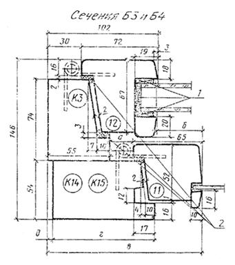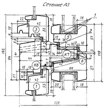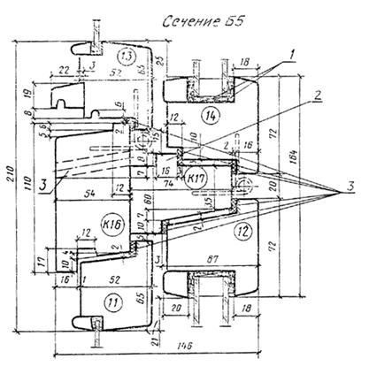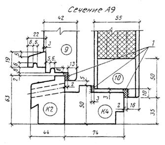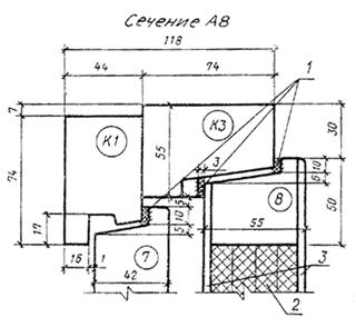 1 — опорные, распорные и боковые прокладки; 2 ¾ уплотняющие прокладки по ГОСТ 10174