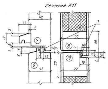 2.9. Места прикрепления уплотняющих пенополиуретановых прокладок в притворах окон и балконных дверей указаны на чертежах сечений деталей.