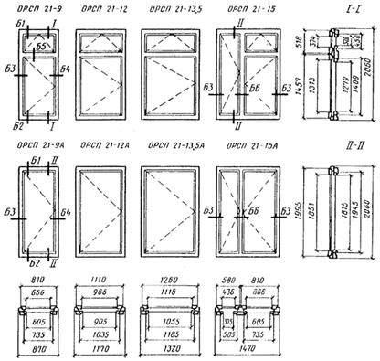 Конструкция, форма, основные размеры и марки окон и балконных дверей жилых зданий