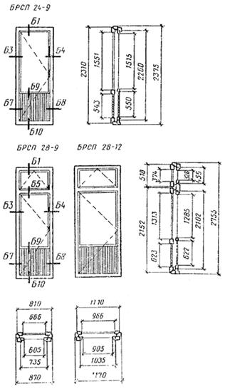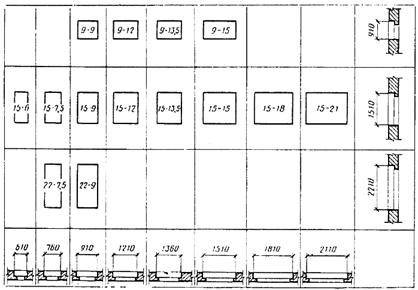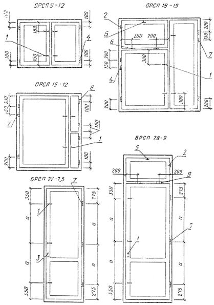 2. Цифры над схемами изделий означают размеры проемов в модулях.