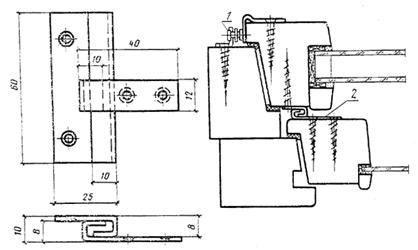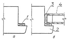 1 — опорные, распорные и боковые прокладки; 2 — рейка, допускается приклеивание рейки с дополнительным креплением шурупами (см черт. 7. вариант); 3 — уплотняющие прокладки по ГОСТ 10174; 4 — отверстие диаметром 10 мм для отвода воды (см. п. 2.4)