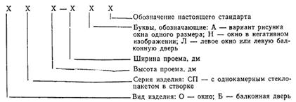 1.5. Устанавливают следующую структуру условного обозначения (марки) окон и балконных дверей: