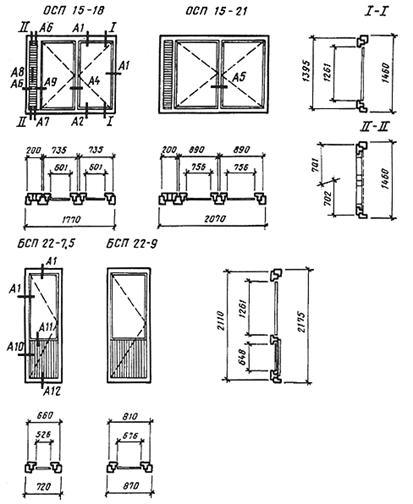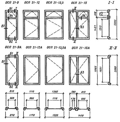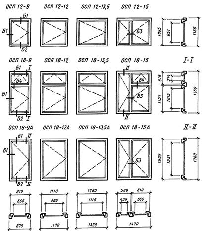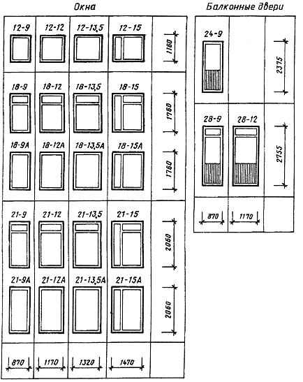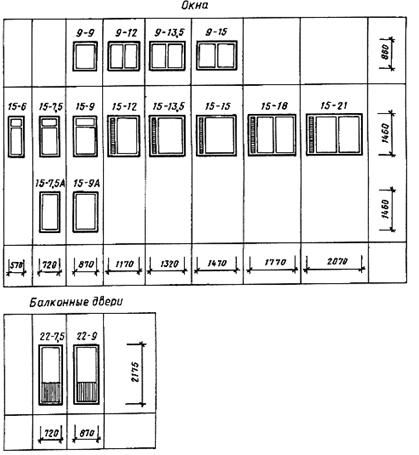 Конструкция, форма, основные размеры и марки окон и балконных дверей жилых зданий