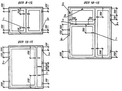 2. Цифры над схемами изделий означают размеры проемов в модулях.