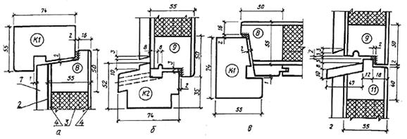 Сечения по притворам окон и балконных дверей жилых и общественных зданий