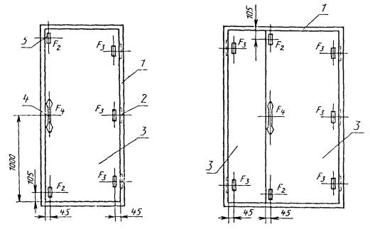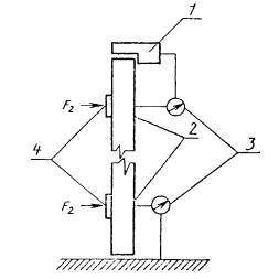 4.3.4.4. При испытании нагрузками F3 и F4 схемы испытаний принимают в соответствии с рисунком 2, при F5 - в соответствии с рисунком 3. Нагружение производят по 4.3.2.