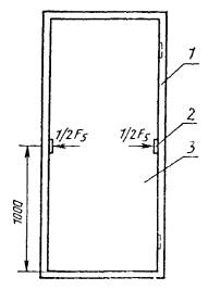 5.3.3.3. На полотне двери размечают зоны нанесения удара М1 и приложения статической нагрузки F4 в соответствии с рисунком 5.