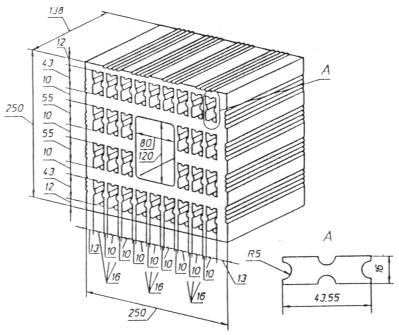 Рисунок А10 - Кирпич с 8 несквозными отверстиями