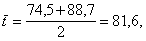 результаты испытаний в порядке строгого возрастания t : t1 = 70,0, R1 = 24,62; ...; t83 = 80,7, R83 =