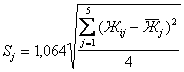 Sj - среднеквадратическое отклонение показателя жесткости бетонной смеси j - го состава.