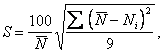 где Ni  - i результат измерений по п. 5, не должна превышать: