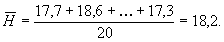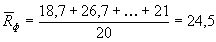 Пример. Прочность бетона проектного класса по прочности В20 контролируют методом отскока прибором КМ. Для установления зависимости между значениями отскока и прочности бетона было испытано в течение 5 сут 20 серий образцов-кубов размером 100´100´100 мм (N=20). Средние результаты по каждой серии приведены в табл. 10.
