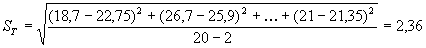 Остаточное среднее квадратическое отклонение, определенное по формуле (9), составит