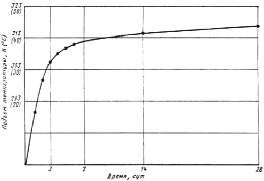(Цемент Теплоозерского цементного завода, М400, расход цемента 300 кг на 1 м3 бетона, начальная температура бетонной смеси 286,4 К (13,4 °С)