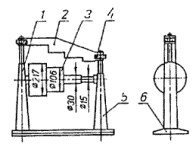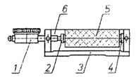 1 — зажим; 2 крыльчатая гайка; 3 — точка подвеса; 4 — веревка; 5 — ведро с песком или захват разрывной машины
