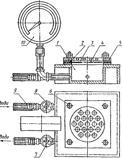5) сопротивление статическому продавливанию - наличие (или отсутствие) воды на поверхности образца после испытания при давлении не менее 0,001 МПа (0,01 кгс/ см2) в течение не менее 24 ч;