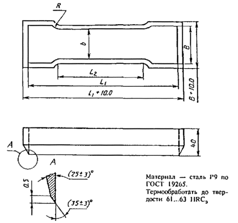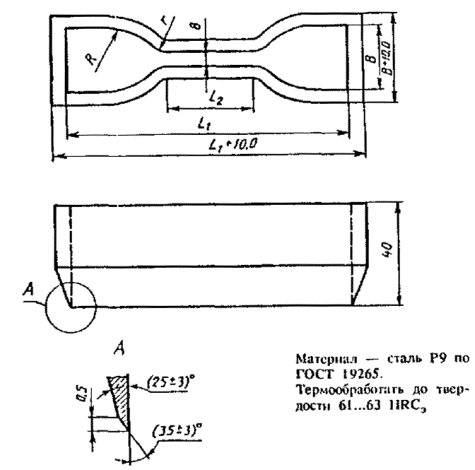 ФОРМА И УГОЛ ЗАТОЧКИ РЕЖУЩЕЙ КРОМКИ НОЖА ДЛЯ ВЫРУБКИ ОБРАЗЦОВ-ЛОПАТОК ТИПА 1